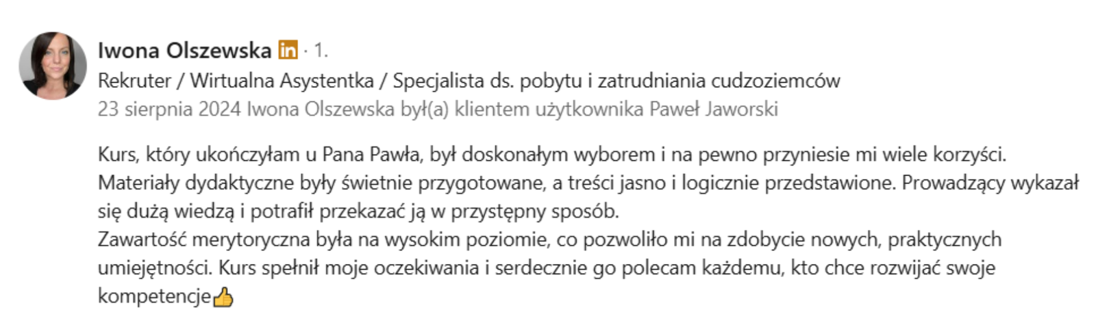 Wiedza zdobyta na moich wydarzeniach nie pozostaje na slajdach – jest natychmiast przydatna w praktyce. Uczestnicy wysoko oceniają moje szkolenia i webinary za rzeczowość, przejrzystość i konkretne podejście.